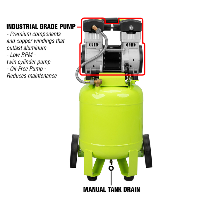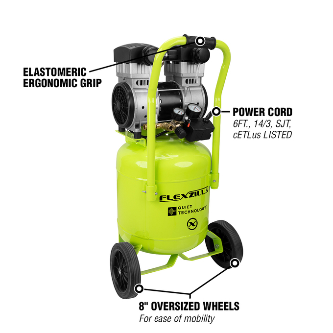 Flexzilla air compressors have an industrial-grade pump and easy access front-mounted controls. This compressor even has an operating noise no louder than a normal conversation!